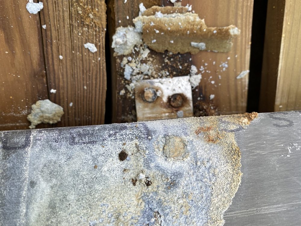 No obstante, incluso en cubiertas sobre madera maciza, se observan problemas graves. Esto se debe, en gran medida, al uso de maderas tratadas con productos químicos antixilófagos, altamente ácidos, que afectan directamente al zinc. Las fijaciones son otro factor crítico: de ellas depende la correcta unión del metal con el soporte. Clavos o tirafondos de hierro mal seleccionados o instalados pueden arruinar completamente una cubierta, independientemente de la calidad del soporte.